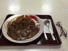 今日は仕事が休みだったので、家でのんびりしてから、久々の外食をして来ました。何だかカツカレーを食べたい気分だったので、いつもの食堂?に行きました。量が多いのは知ってるので、ご飯少なめでオーダー出来上がりを見て… ?えっ?? ?もしかして、聞こえてなかったのかな??でも食べすすみ、最後の方はカレーが余ったので、一応ご飯少なめにはなっていたようです。ちなみに¥620です。そこは1番高くて¥620です。オススメ?R