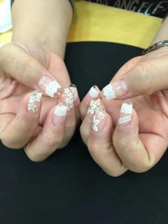 クリアスカルプやってもらいましたぁ~?キレイめにして貰ったので、花嫁さんみたいです?手は日焼けしてて汚いんですけど、テンション上がります?R