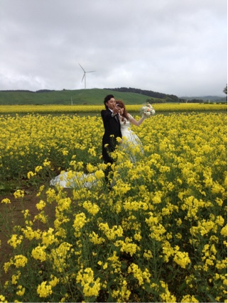 先日ブライダルの手伝いで、横浜町の菜の花畑へロケに行って来ました 観光でいらっしゃってる方たちやスタッフの方たちからもお祝いしてもらい、恥ずかしそうにしながらも嬉しそうでした 今年は桜、菜の花とロケが多かったのですが皆さんとってもキレイで見ている私も微笑んでしまい、口を閉じる事が出来ませんでした 皆さんお幸せに R